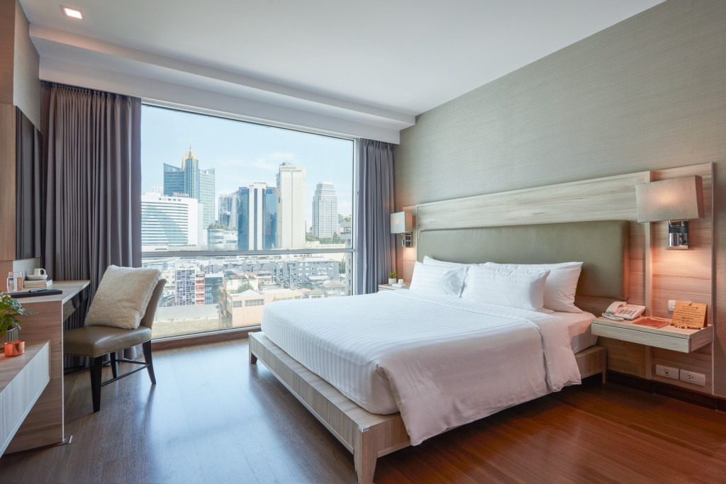 Hotel is just steps away from exciting cultures and nightlife in Bangkok. With delicious dining options and high-end shopping malls to happening bars and nightlife experiences, the convenience of our hotel will spoil you with choices of activities. Keeping your body energized in our state-of-art Fitness Gym or sit back and have relaxing dip at our rooftop swimming pool, is sure to have you ready and fully charged to explore the city’s excitement. And at the end of a full day, return to your room and sink into the comfort of your luxurious bed.