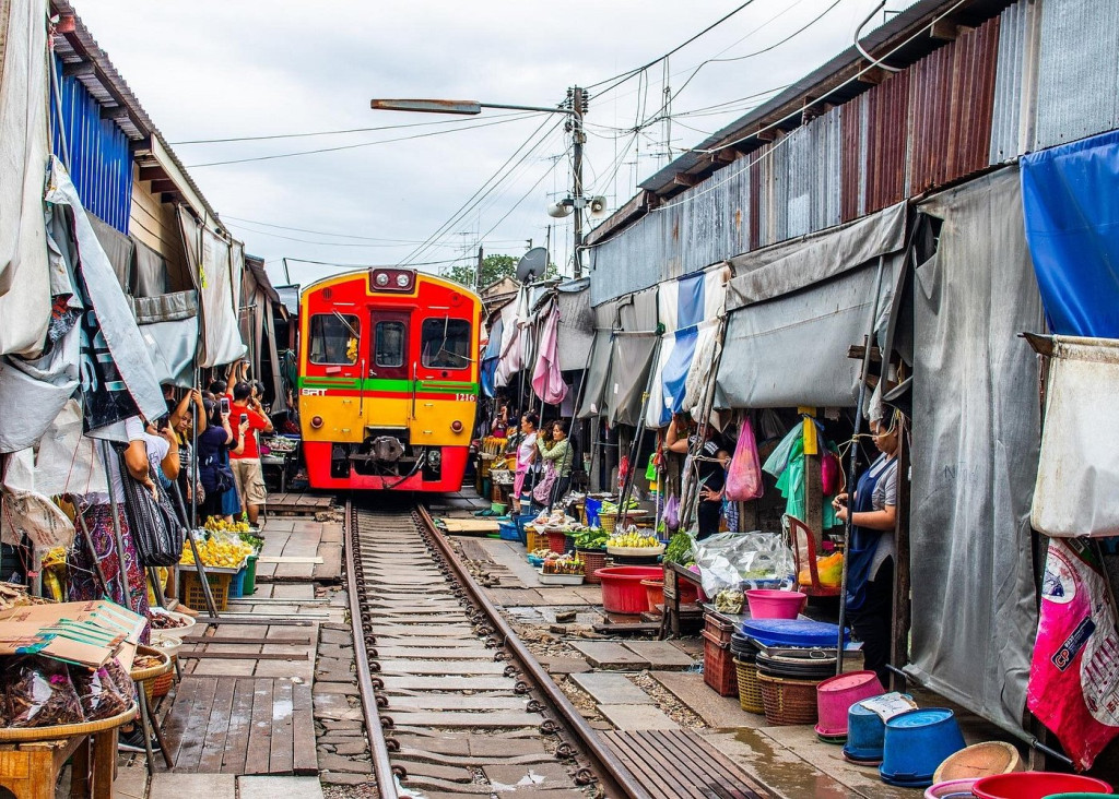 Transfer from hotel by minivan to Mae Klong district (78 kms / 1.15 hours drive). Visit the one-of-a-kind traditional Thai market selling fresh vegetables, food and fruits. The market occupies part of a train line. A few times a day, a train runs directly through the market. A few minutes before the train comes, vendors lower their umbrellas and move some of their produce away from the train tracks. As soon as the train passes, the vendors move their goods back onto the tracks and continue as normal (until the next train arrives).