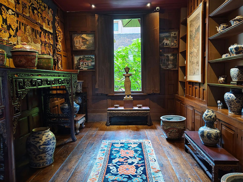 Transfer from hotel by minivan to Suan Pakkad Palace, originally the residence of the late HRH Prince Chumbhot, the grandson of King Rama V and his wife, Princess Pantip. The palace has well kept grounds and the reception pavilion in traditional Thai domestic architecture is now a private museum with a collection of pre-historic artifacts, antiques, porcelain, paintings, furniture and other curios. The definite centerpiece is the lacquer pavilion in the garden.
