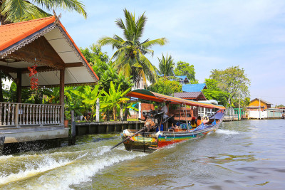 Continue to Damnoen Saduak district. Board a long tail boat for a ride through narrow canals along villages and fruit plantations.