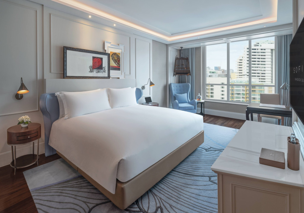 Sofitel Bangkok Sukhumvit, South east Asia's flagship for Sofitel Hotels, brings refined French elegance to Bangkok. The iconic 32-storey art deco inspired hotel occupies a prime location at the heart of vibrant downtown Sukhumvit. Making it the perfect choice for tourists and travellers looking for a luxurious stay within the main city district of Bangkok. The luxury 5-star hotel also features renowned fusion French and Thai restaurants such as the Belga Rooftop Bar & Brasserie and Bella Sera Restaurant.